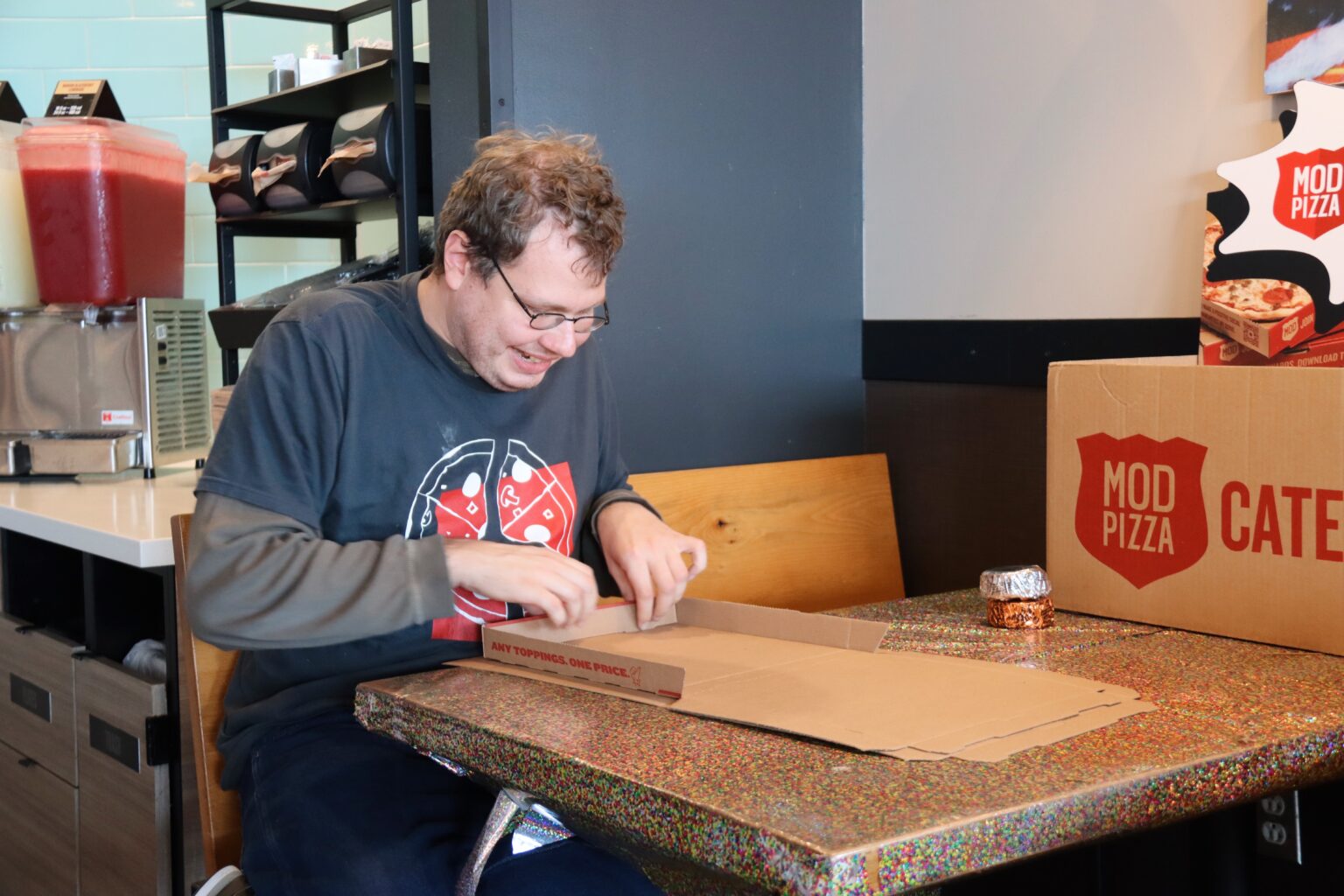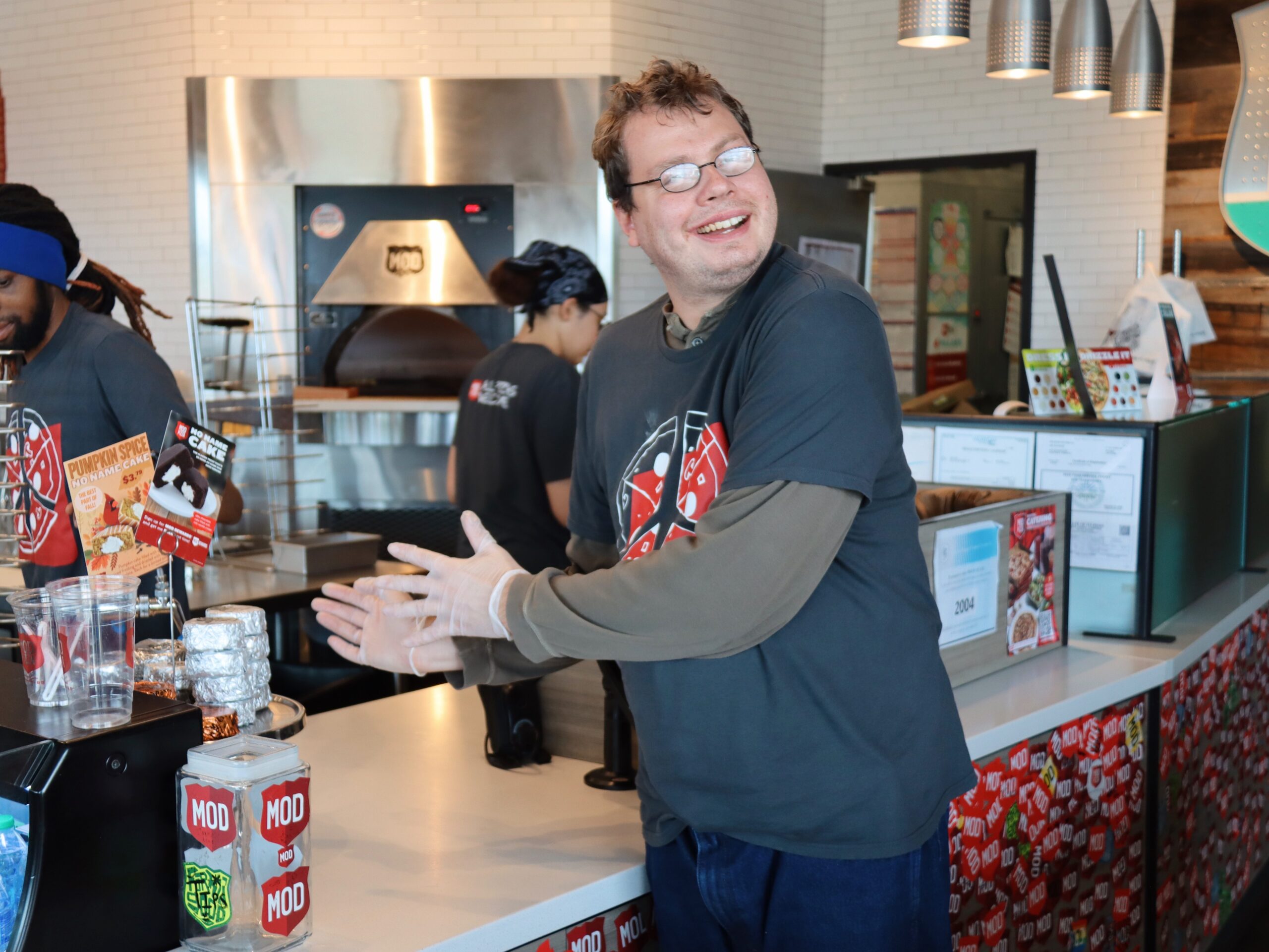 Scott has been part of the MOD family for over a year and a half, and he’s loving every second of it. From greeting guests to expertly folding pizza boxes, Scott has found his footing in a workplace that values his enthusiasm and dedication.